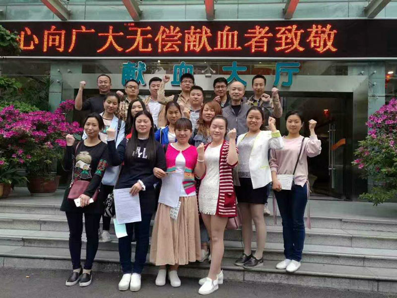 2017年4月18日四川泰華堂制藥有限公司老員工喬鐵鎖的愛人范安娜(廣漢市雒城鎮(zhèn)九小教師)突發(fā)重病,體內(nèi)血小板急劇降低,生命垂危,被送至華西醫(yī)院搶救。急需血小板的消息在公司傳開后,在公司工會的組織下,公司職工不分男女、不分血型、不分老少,踴躍報名為她捐獻血小板。由于血小板的提取對身體狀況要求非常嚴格,經(jīng)初步篩選,4月20日,18位基本符合要求的同志一大早就來到成都市血液中心抽血化驗做最后的檢查,最終有5位同志共捐獻了六個治療量的血小板。